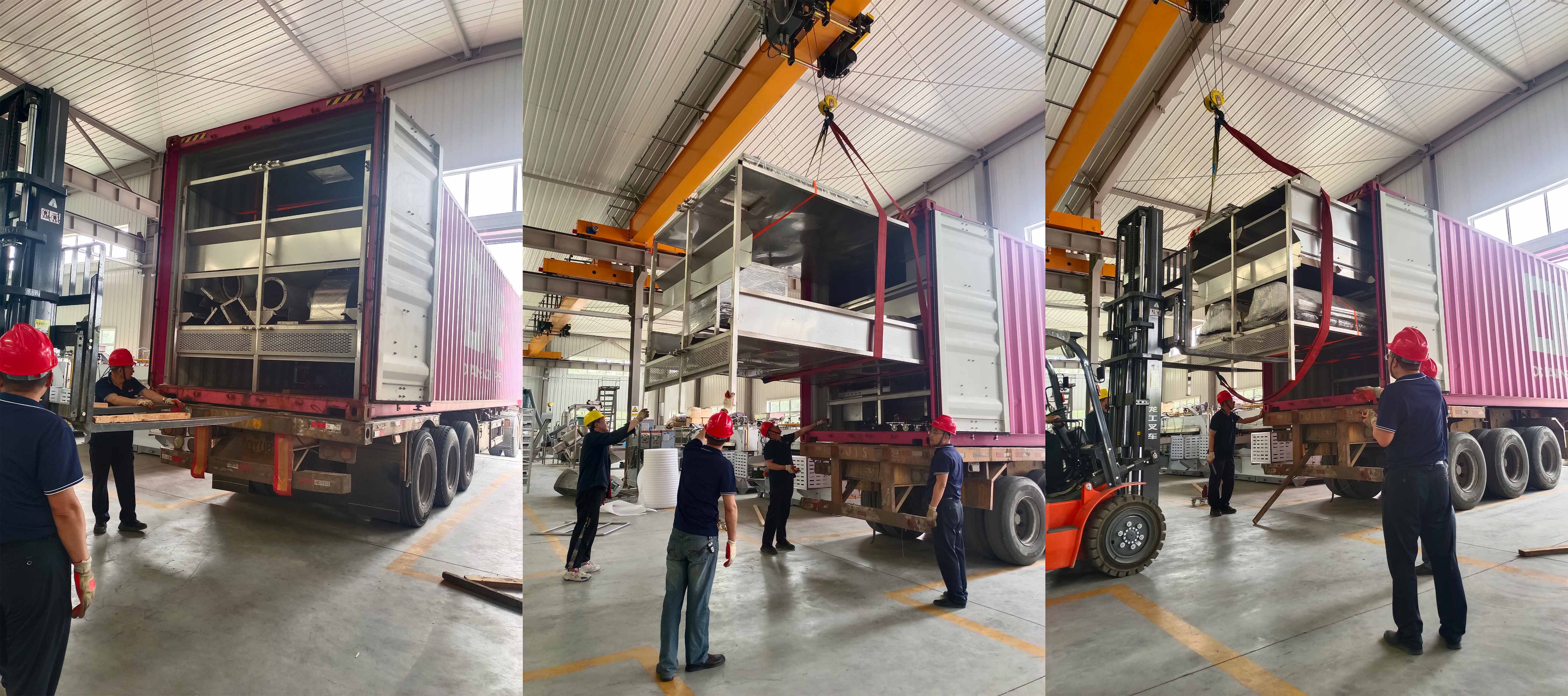 國外客戶(hù)的多功能連續烤爐發貨了!本(běn)次發貨共4 個集裝箱,發貨工作正緊張而(ér)忙碌地進行著(zhe)。現場一片熱火朝天的景象,每一個環節都在有條不紊地推進。