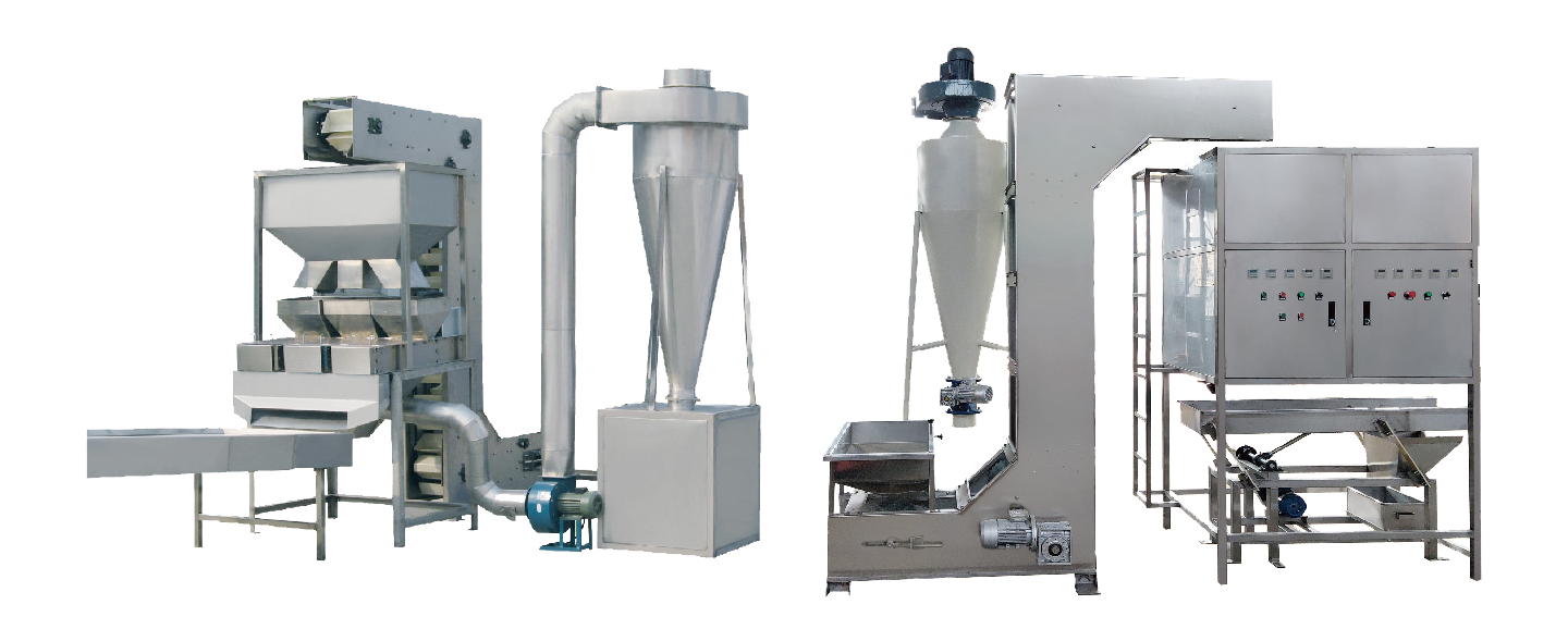 該生產線主要用於花生米幹燥後的全自(zì)動(dòng)化脫(tuō)皮加工。具有烘烤顏色均勻、無氧化(huà)變性(xìng)、無汙染、脫皮率高、整仁率高、產量高(gāo)、自動化程度高等特點。