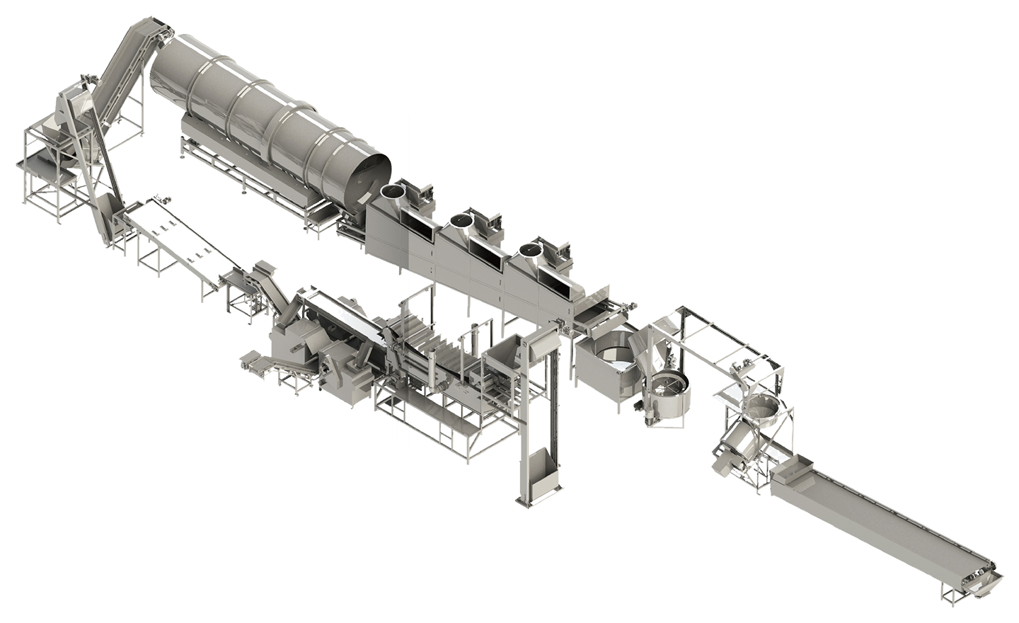 該生產線主要用於油炸花生米,麻辣(là)花生、淮鹽花生等的油炸加(jiā)工。生產線自動化程度高(gāo),貼合傳統生產工藝,易清洗;產品色(sè)澤光亮、整仁率高、口(kǒu)感酥脆。